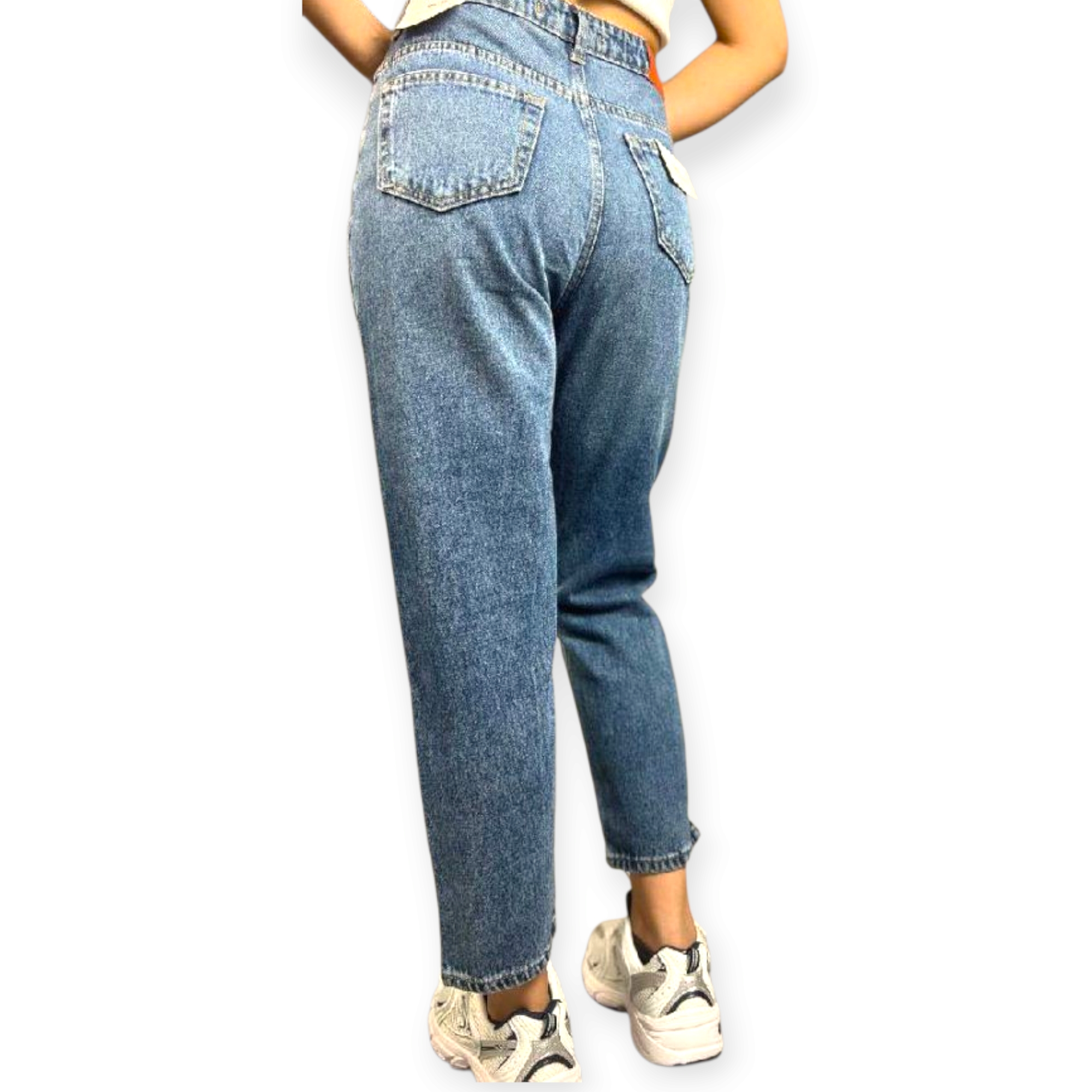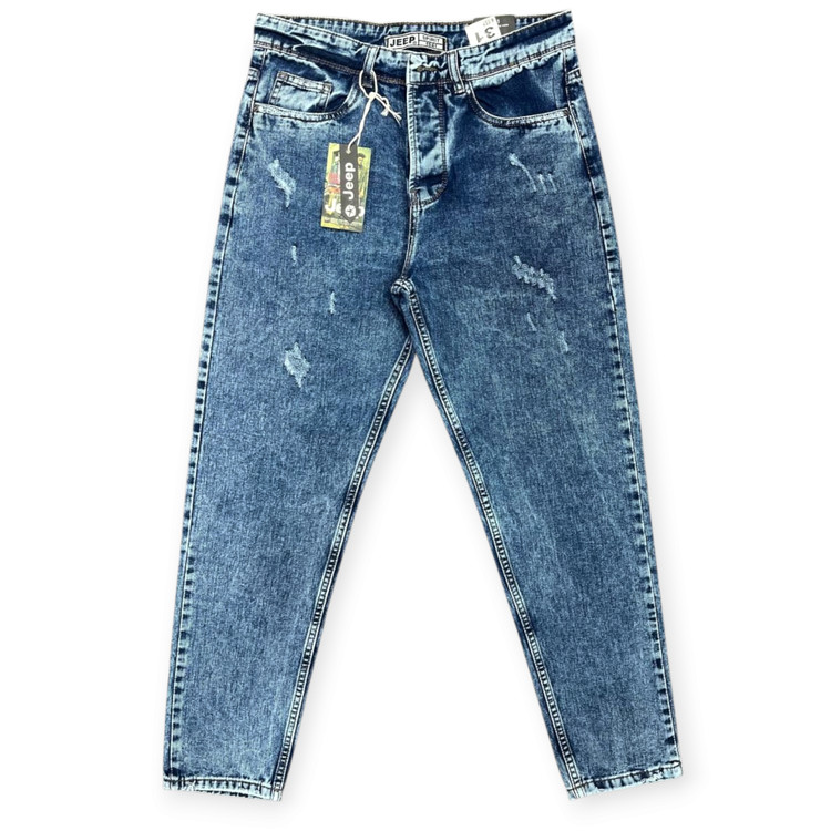 شلوار جین مام فیت زاپ دار آبی جین/یخی برند جیپ وارداتی ویتنامی 🇻🇳